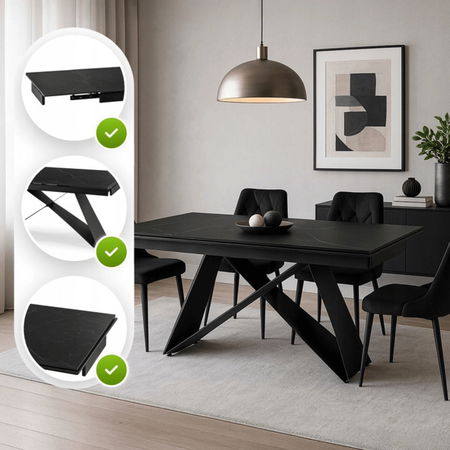 Rozkladací jedálenský stôl Vicero (čierna) (pre 6-8 osôb)