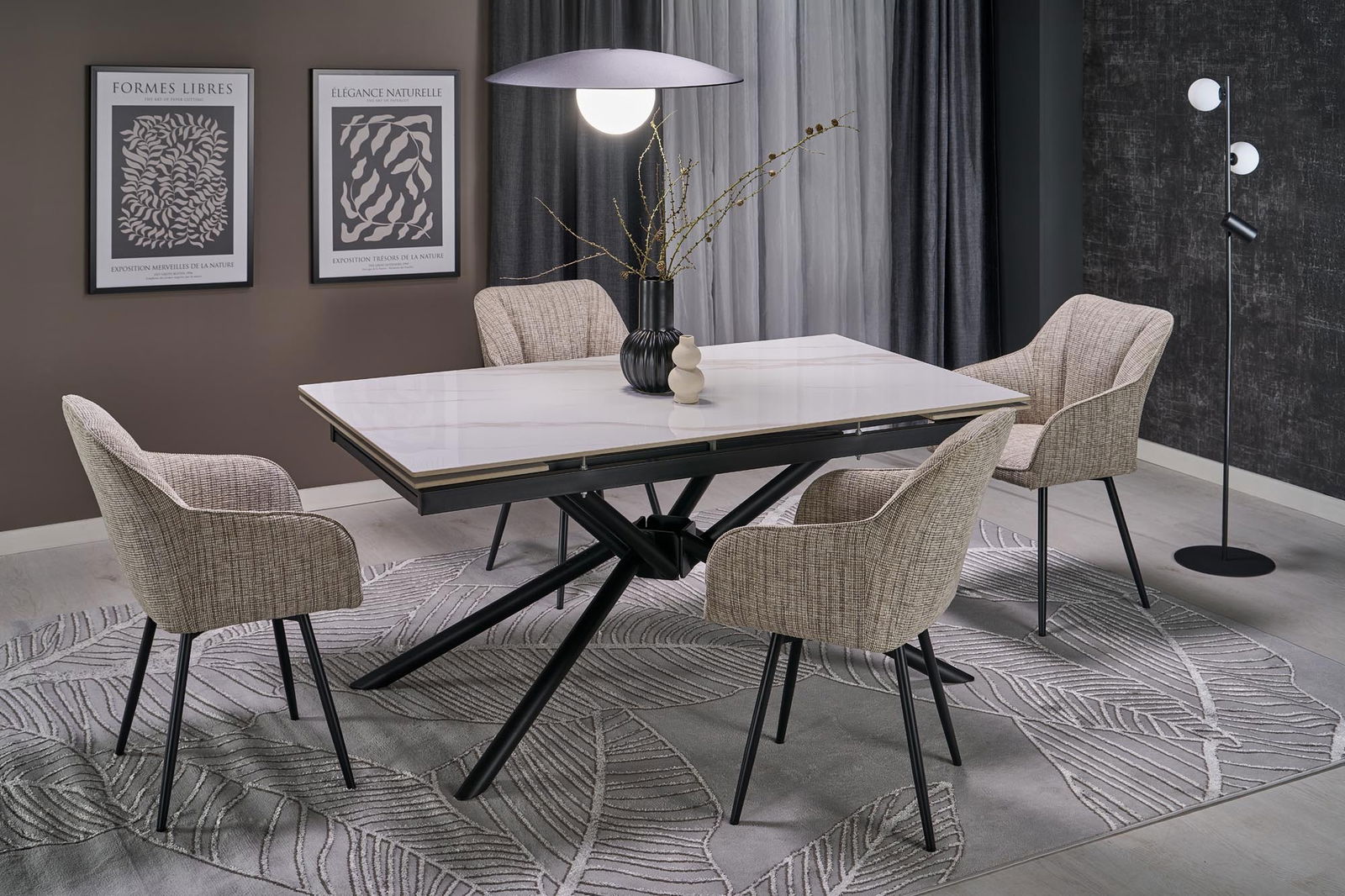Rozkladací jedálenský stôl Victory (biely mramor + čierna) *výpredaj