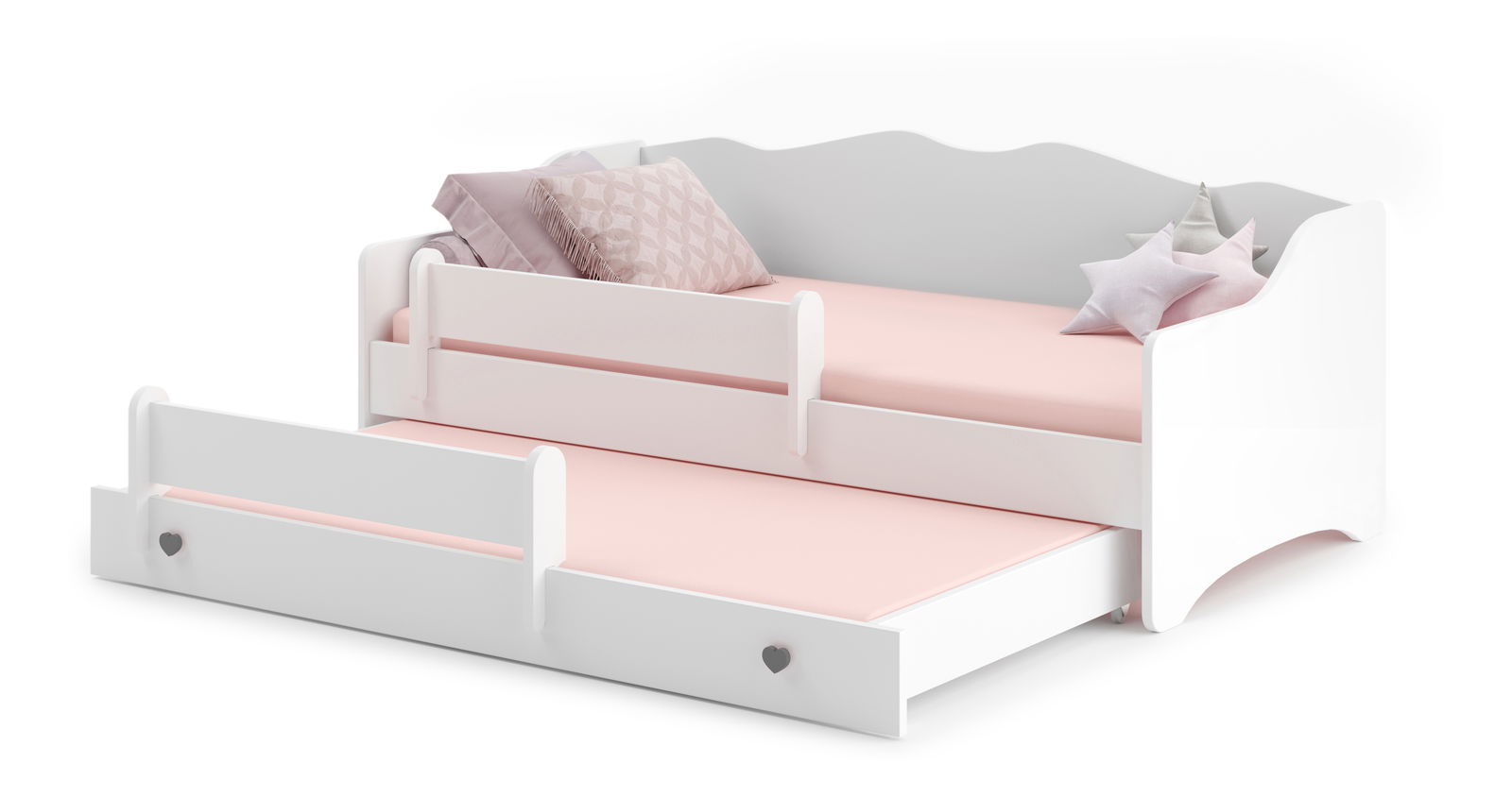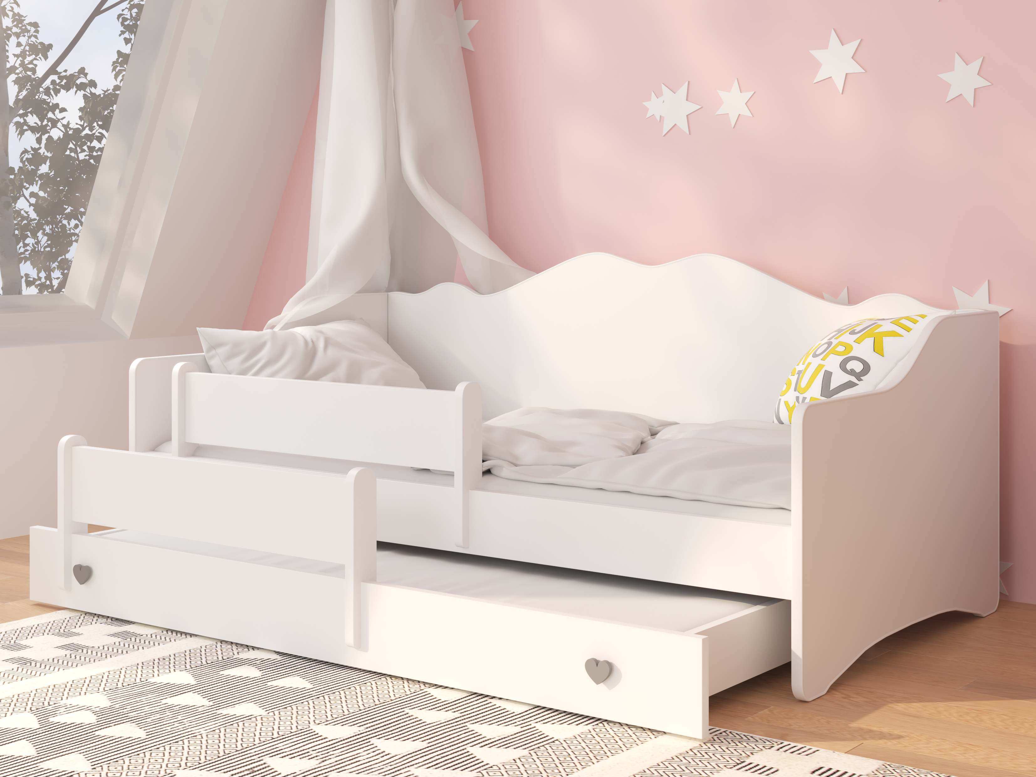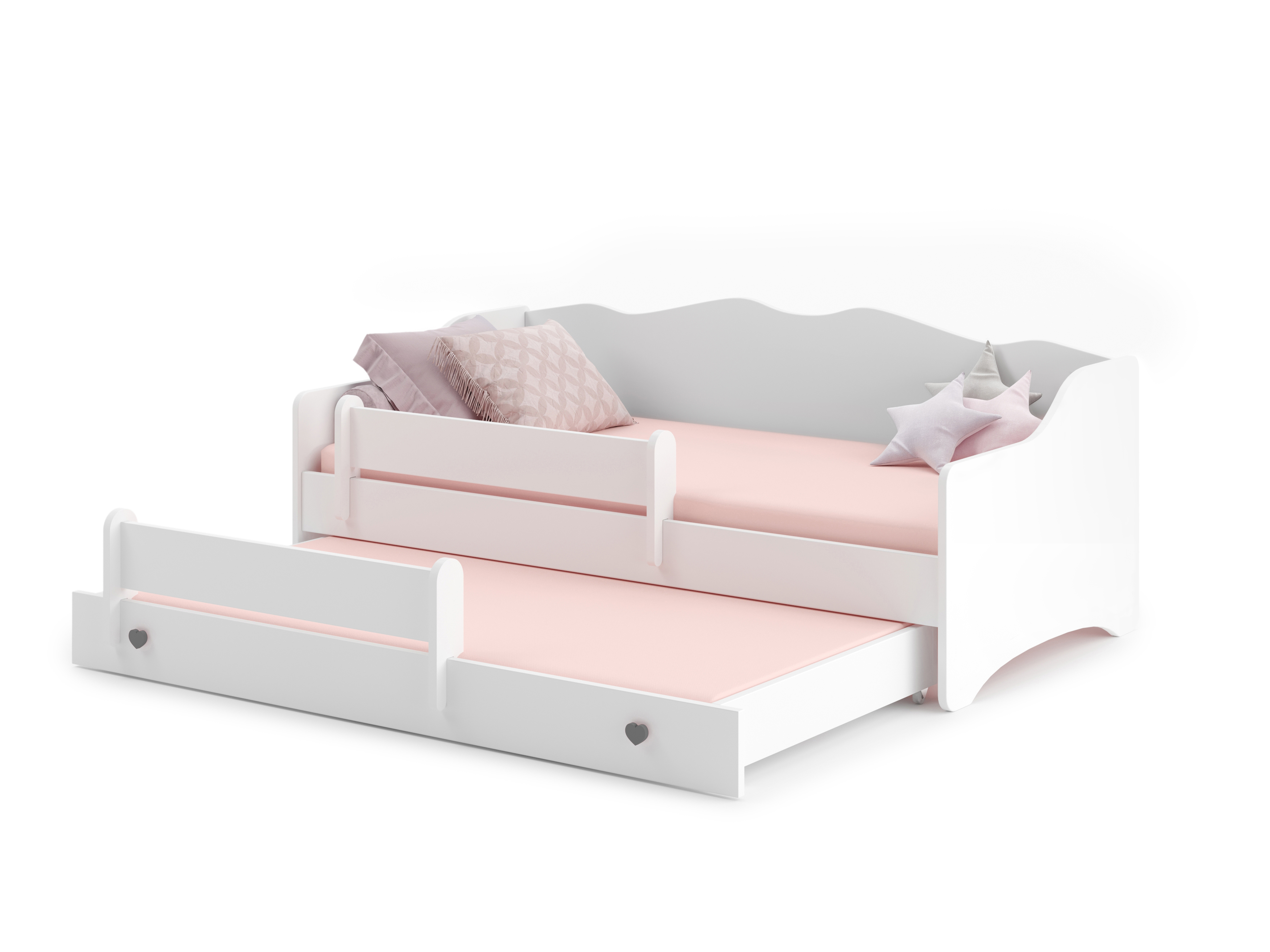 ESTER II je detská rozkladacia posteľ s rozmormi 160x80 cm, bielo-sivej farby a výškou 70 cm a hĺbkou 164 cm. Je vyrobená z kvalitnej laminovanej dosky s PVC okrajmi, vďaka čomu je pevná a odolná. Posteľ je vybavená roštom s flexibilnými lamelami pre optimálne pohodlie a podporu počas spánku, ako aj penovým matracom s odnímateľným poťahom na zips pre jednoduchšie čistenie. Posteľ má dve lôžka, horné s rozmormi 164x85x7 cm a plochou na spanie 160x80 cm a matracom o rozmere 160x80x7 cm, a spodné s rozmormi 160x80x15 cm, plochou na spanie 145x80 cm a matracom o rozmere 145x80x7 cm. Obidve lôžka majú bariéru proti spadnutiu pre bezpečnosť dieťaťa. ESTER II má tiež rukoväte v tvare srdca, ktoré dodávajú postieľke osobitý šmrnc. Táto multifunkčná postieľka nie je len miestom na spanie, ale aj hráčkou a súkromným útočiskom pre vašu ratolest.