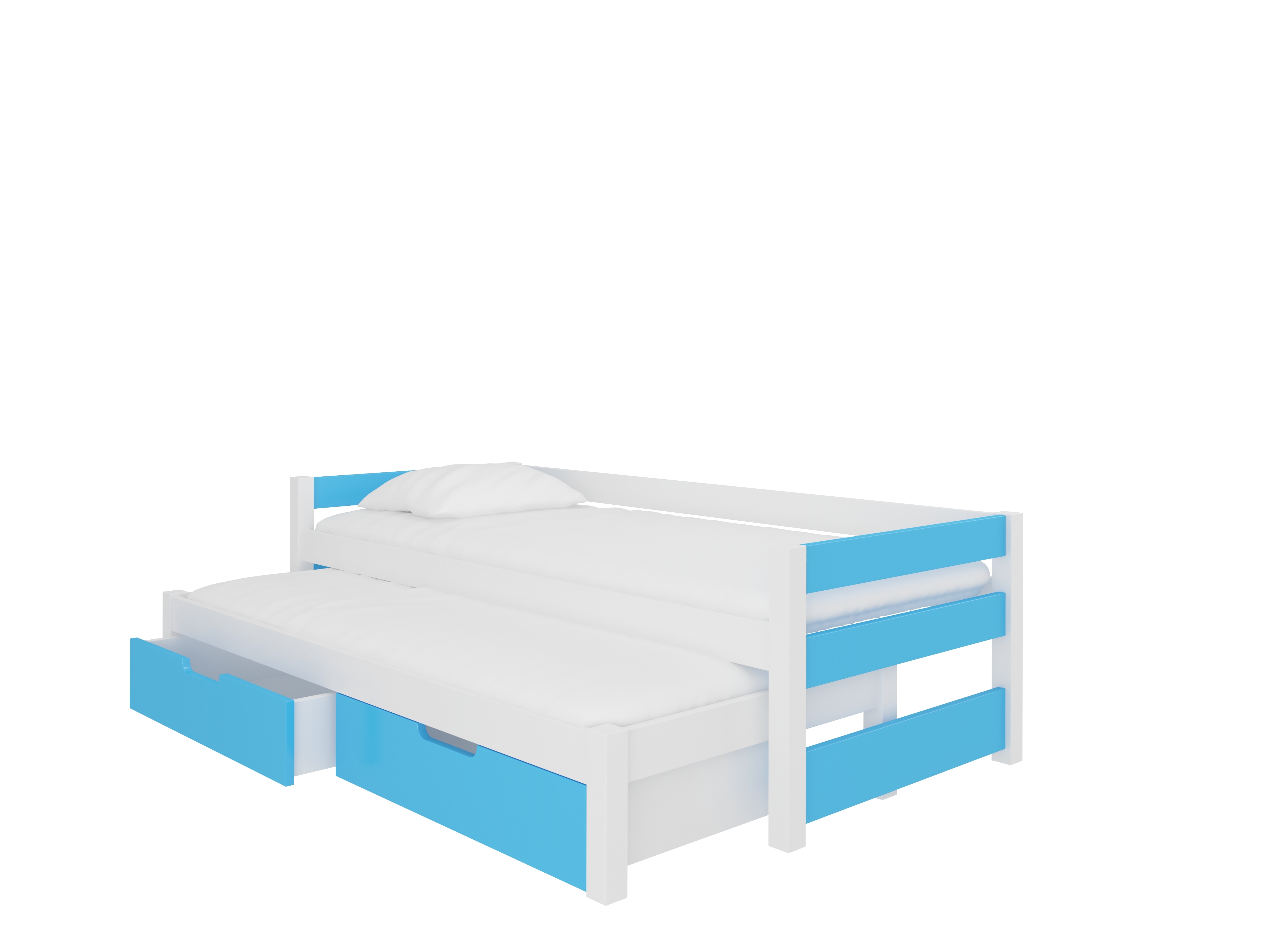 Rozkladacia detská posteľ 200x90 cm Fifo (s roštom a matracom) (biela + modrá) je vynikajúcou voľbou pre každú detskú izbu. Táto postieľka je vyrobená z kvalitnej MDF dosky, čo zabezpečuje pevnosť a odolnosť. K postieľke je súčasťou balenia rošt, čo znamená, že vaše deti dostanú všetko, čo potrebujú pre zdravý a pohodlný spánok. S penovým matracom, ktorý je vybavený odnímateľným poťahom na zips, bude spánok vašich detí nielen pohodlný, ale aj hygienický. Postieľka má aj úložný priestor - dve vysúvacie zásuvky na gumených kolieskach, kde môžete uložiť oblečenie, hračky a všetko, čo vaše deti potrebujú. Plocha na spanie v postieľke Fifo je štandardnej veľkosti, s horným lôžkom o rozmeroch 200 x 90 cm a spodným lôžkom o rozmeroch 192 x 90 cm. Postieľka je vhodná aj pre návštevy. Aj keď postieľka nie je vybavená bariérou proti spadnutiu, jej konštrukcia je stále bezpečná a spoľahlivá. V procese výroby sa používajú ekologické vodové farby, ktoré sú bezpečné pre deti a odolné voči mechanickému poškodeniu. Postieľka Fifo je dodávaná v troch balíkoch a baleniu prislúcha príslušenstvo na montáž a montážny návod.