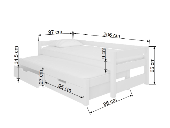 horné lôžko: 200 x 90 cm, spodné lôžko: 192 x 90 cm