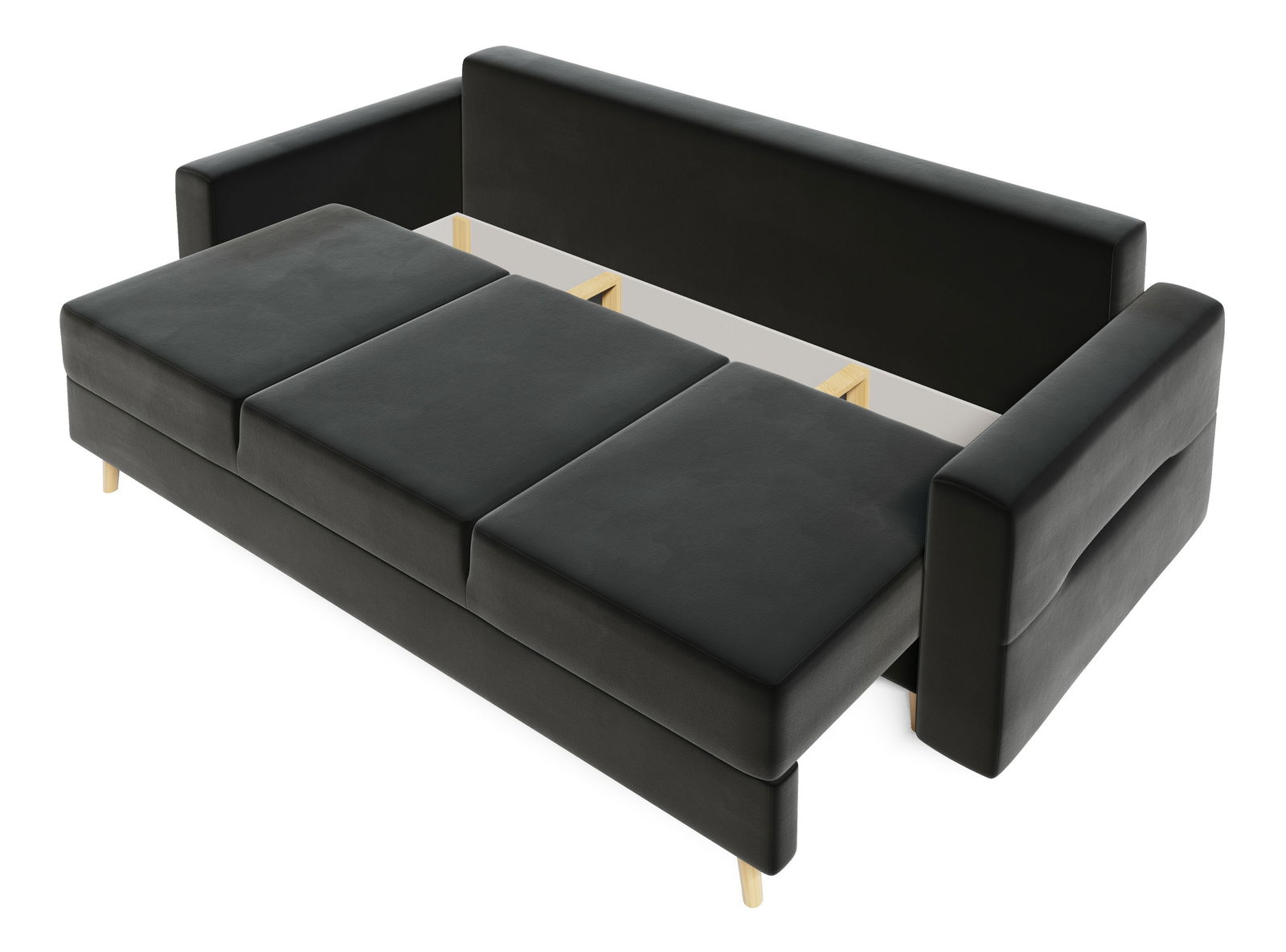 Rozkladacia pohovka Bergenia v tmavosivej farbe s originálnymi vankúšmi s motívom postáv je ideálnym riešením pre moderné obývacie izby, štýlové pracovne či útulné študentské izby. Jej čisté línie a škandinávsky dizajn prinášajú do priestoru sviežosť a nadčasovosť, pričom drevené nožičky dodávajú nábytku ľahkosť a prirodzený vzhľad.