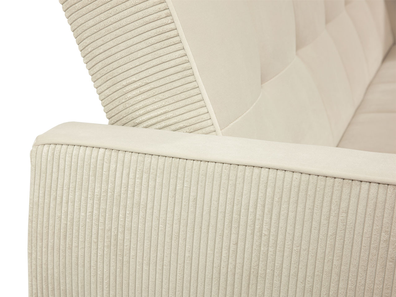 Rozkladacia pohovka Pexalo v horčicovej farbe je riešením pre moderné obývacie izby, ktoré ocenia kombináciu štýlu a praktickosti. Jej povrch z módneho manšestru v spojení s hladkou látkou na sedadle prináša príjemný dotyk a vizuálnu zaujímavosť, ktorá oživí každý interiér – od minimalistického, cez škandinávsky až po industriálny štýl.