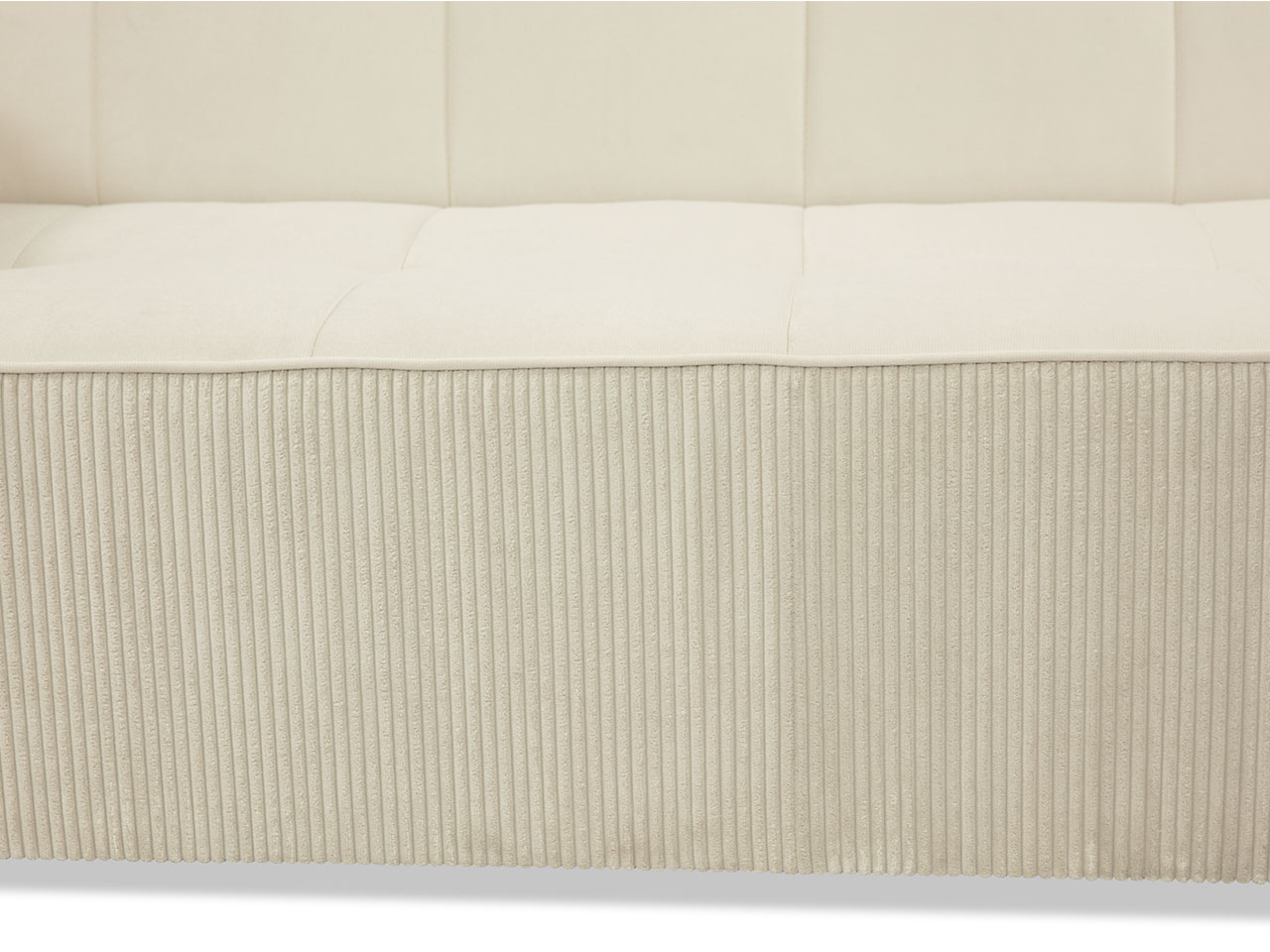 - Čierne plastové nohy dodávajú pohovke stabilitu a moderný vzhľad.