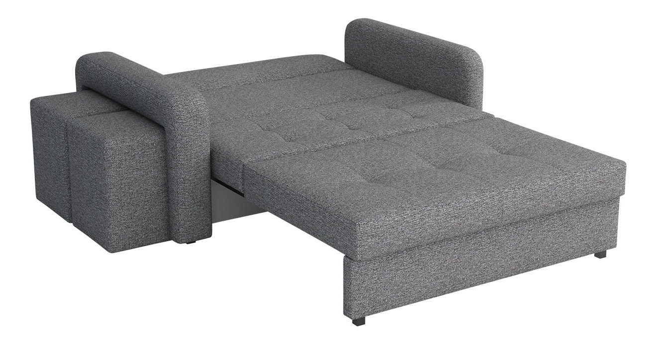Vďaka kvalitnému čalúneniu s penou T25/42 a vlnovou pružinou poskytuje pohodlné sedenie aj spanie na ploche 196 x 112 cm, čím sa stáva vhodnou voľbou aj pre hostí. Súčasťou sú dve taburetky, ktoré možno využiť ako doplnkové sedenie alebo odkladací priestor, čím pohovka získa ešte väčšiu funkčnosť. Tento model patrí medzi rozkladacie sedačky vhodné na každodenné spanie, ktoré sú praktickým riešením do menších priestorov.
