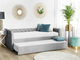 Posteľ inšpirovaná štýlom Chesterfield je kombináciou funkčnosti a štýlu. Je čalúnená na dotyk jemnou látkou a má ozdobné gombíky, takže sa bude hodiť do interiérov zariadených v retro i tradičnom štýle. Odolný lamelový rošt umožňuje rovnomerné rozloženie telesnej hmotnosti pre zdravý a nerušený spánok. Posteľ možno veľmi jednoducho rozložiť vysunutím spodnej časti a vytvoriť dodatočné miesto na spanie, čo oceníte najmä vtedy, keď k vám prídu hostia.