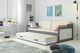 Rozkladacia posteľ 80 x 190 cm - BMS Group - Dimar (grafit + biela) je ideálnou voľbou pre tých, ktorí hľadajú pohodlné a praktické riešenie pre hostí alebo pre malé priestory. Vďaka svojim úložným priestorom je táto posteľ skvelým riešením pre uskladnenie vecí, ktoré nepoužívate pravidelne. Rám postele, vyrobený z borovicového dreva a lakovaný lakom na vodnej báze, zaručuje kvalitu a bezpečnosť v súlade s normami TUV. Rozmery postele sú výška 60 cm, šírka 87 cm a hĺbka 195 cm. K posteli sú súčasťou rošty a matrace, ktoré zabezpečia pohodlný a kvalitný spánok. V kombinácii grafitem a bielou farbou postele sa stane moderným a elegantným kúskom do vášho interiéru.