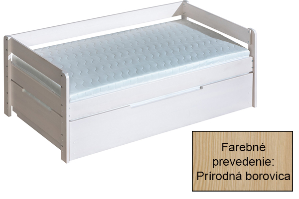 Rozkladacia posteľ Balos 90 cm s úložným priestorom prináša priamo do detskej izby kúsok prírody v podobe borovicového dreva. Stabilná konštrukcia zaručuje bezpečnosť a pohodlie. Je rozkladacia, takže sa dá rozložiť na dve samostatné lôžka. Vyrobená je z kvalitnej laminovanej dosky LTD. Dodávame v demonte.