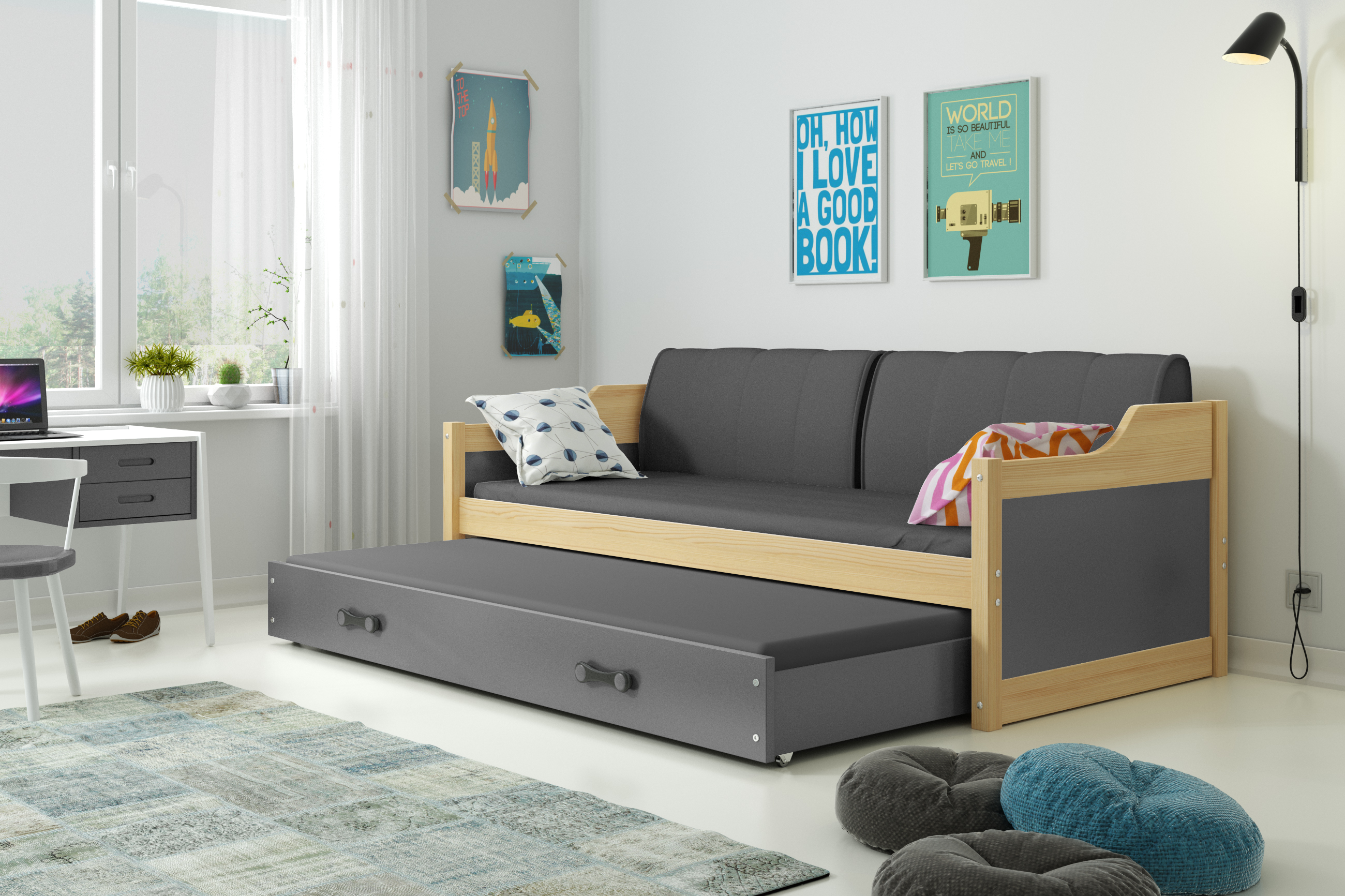 Rozkladacia posteľ 90 x 200 cm Dimar (borovica + grafit) (s roštami, matracmi a úl. priestorom)