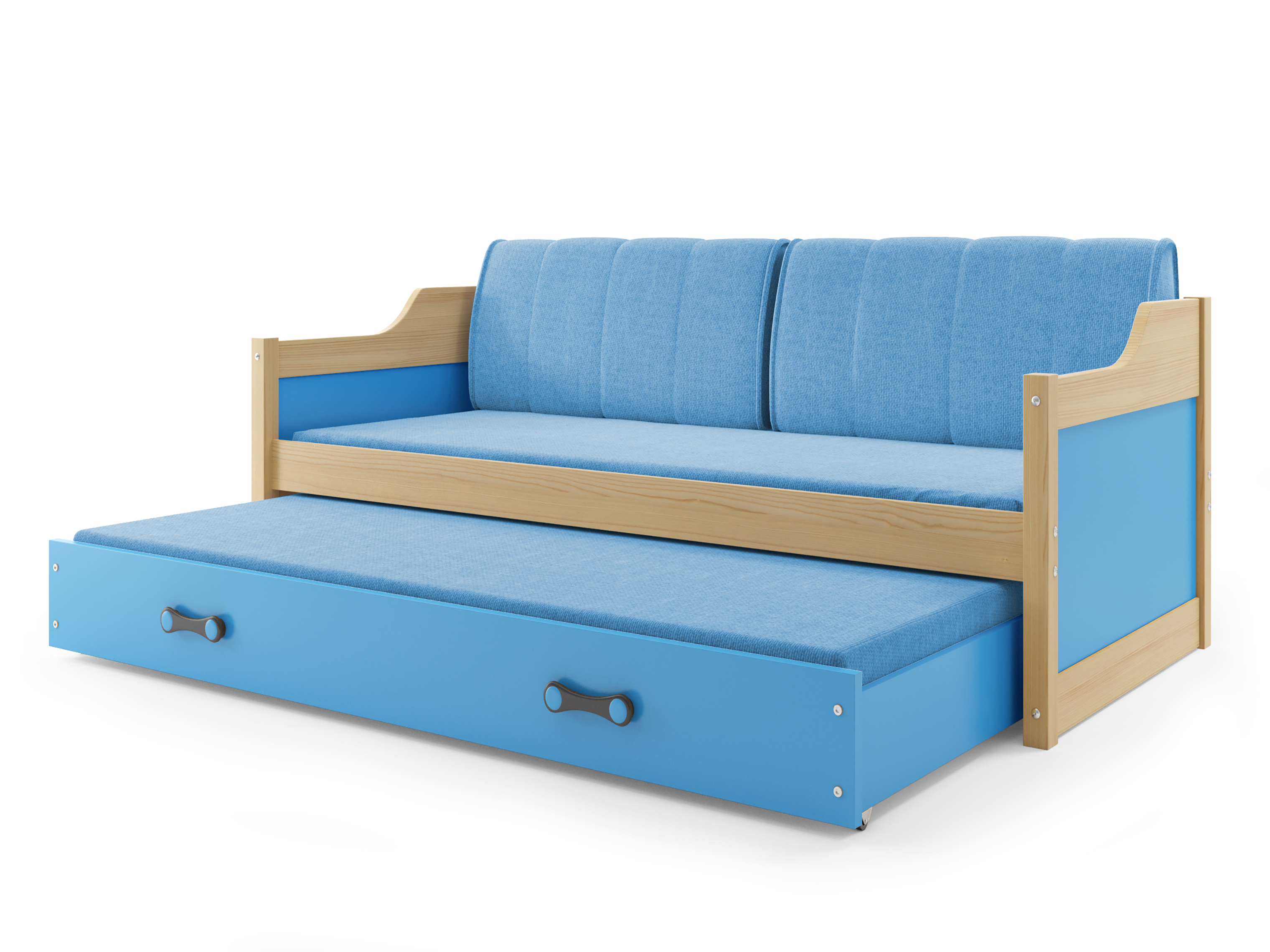 Rozkladacia posteľ 90 x 200 cm Dimar (borovica + modrá) (s roštami, matracmi a úl. priestorom)