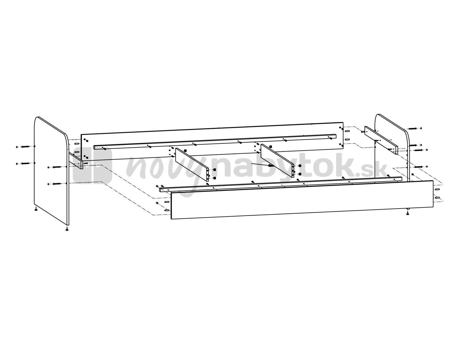 Posteľ je dodávaná bez roštu a matraca. Tie si môžete vybrať a priobjednať z nášho internetového obchodu.