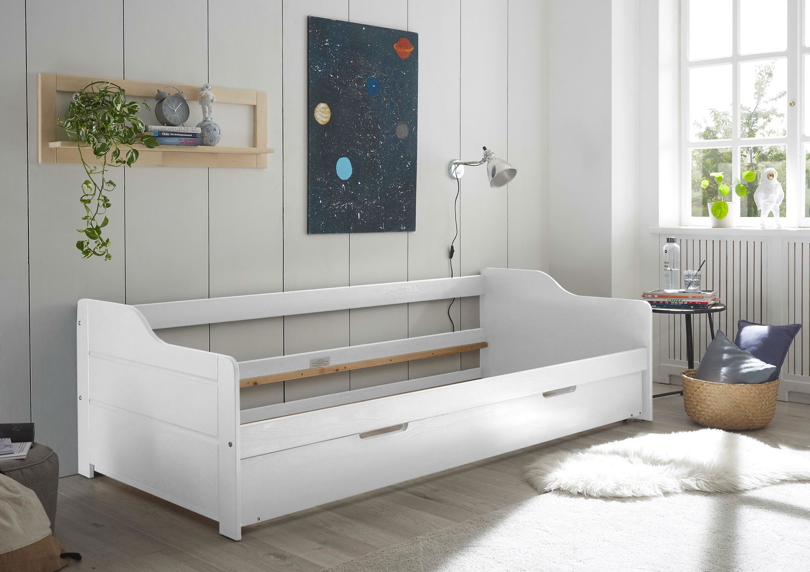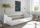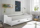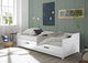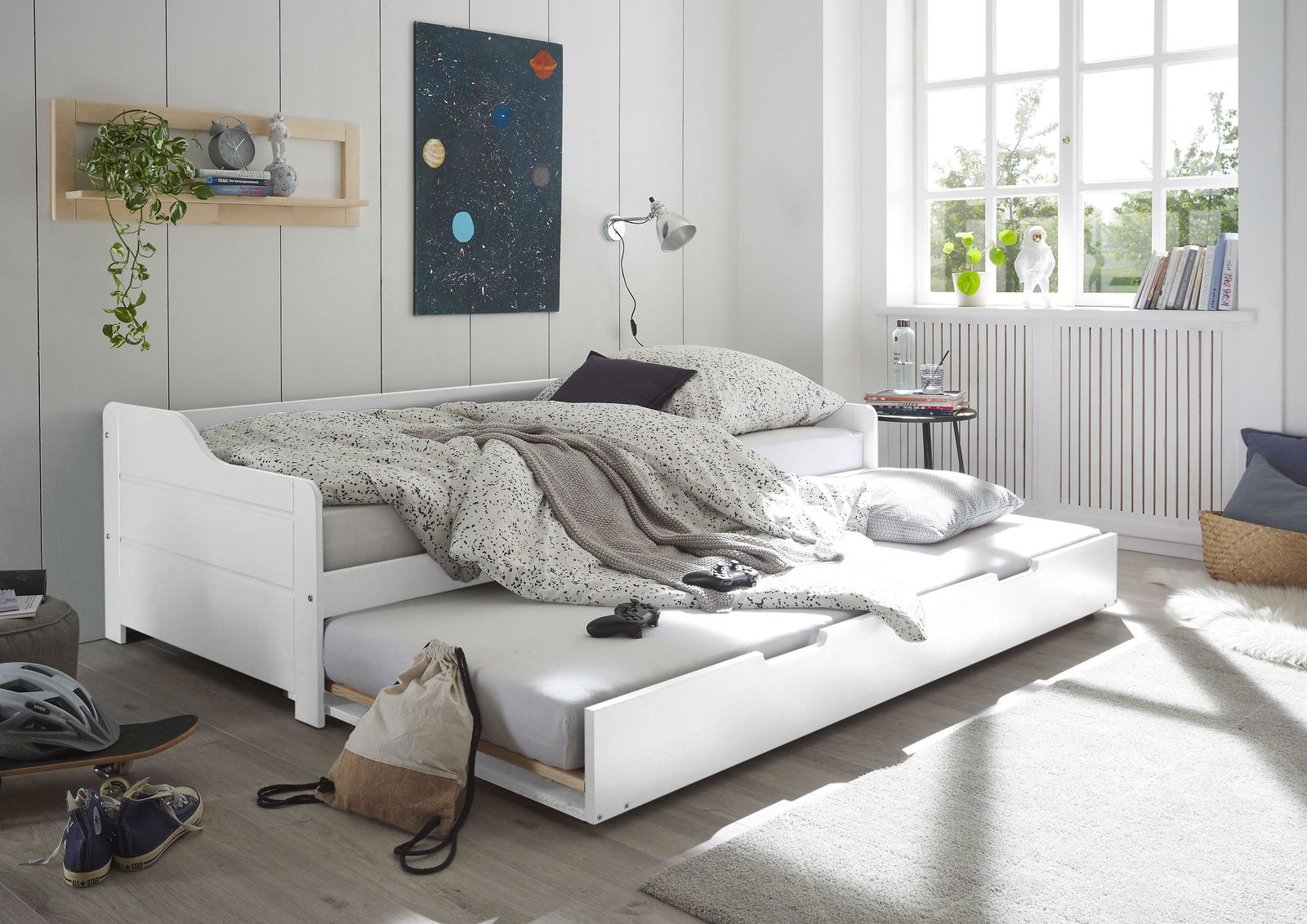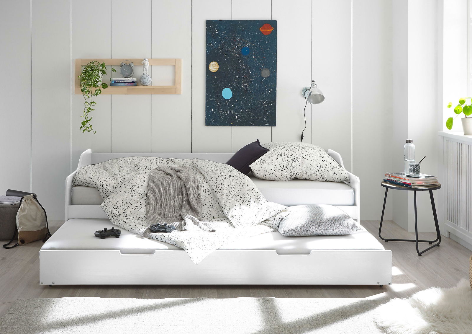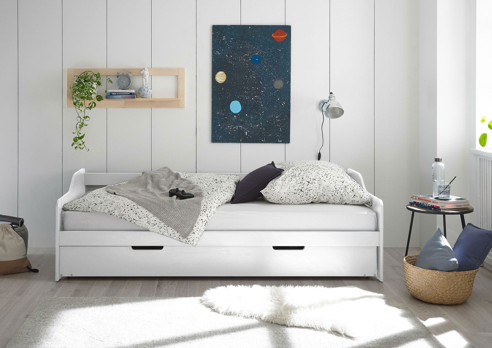 ZobraziťRozkladacia posteľ Jadis vo farebnom prevedení borovica biela je moderný a univerzálny kus nábytku, ktorý poskytne Vašej spálni či detskej izbe až 2 pohodlné lôžka. Vyrobená je z masívneho borovicového dreva v kombinácii s doskou MDF. Svojim moderným dizajnom zapadne do akéhokoľvek interiéru a bude výborným miestom na odpočinok. Jej 2 ložné plochy majú rozmery 90x200 cm a súčasťou balenia je taktiež aj rolovateľný rošt. Matrace nie sú súčasťou balenia. Jej odolnosť a stabilitu zaručujú nohy a bočnice s priemerom 1,8 cm a jej čelo má hrúbku 1,8 cm. Rozkladacia posteľ Jadis čaká na príležitosť slúžiť Vám ako nekonečný zdroj odpočinku a relaxu!