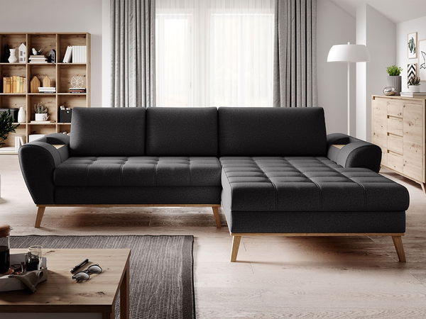 Rozkladacia pohovka Mitidera je mimoriadne pohodlný a originálny kus nábytku, ktorý je vybavený praktickými funkciami. Má nádobu na lôžkoviny a funkciu spania, takže spája pohodlie a funkčnosť. Vďaka funkcii automatického rozkladania môžete rohovú pohovku rýchlo a jednoducho premeniť na miesto na každodenný odpočinok. Opierka chrbta je tvorená pohyblivými vankúšmi s penovou výplňou, ktoré sú mäkké a pohodlné. Po stranách nábytku sú drevené poličky, ktoré sa výborne hodia na sedenie v kine - môžete na ne pohodlne položiť pohár s nápojom alebo misku s občerstvením. Moderná rohová pohovka Mitidera sa vyznačuje zaujímavým dizajnom. Prešívané sedadlo mu dodáva nezvyčajný vzhľad, zatiaľ čo vysoké drevené nohy dodávajú nábytku ľahkosť. Nájde si senzačné miesto v štýlovo zariadenej obývačke.