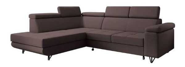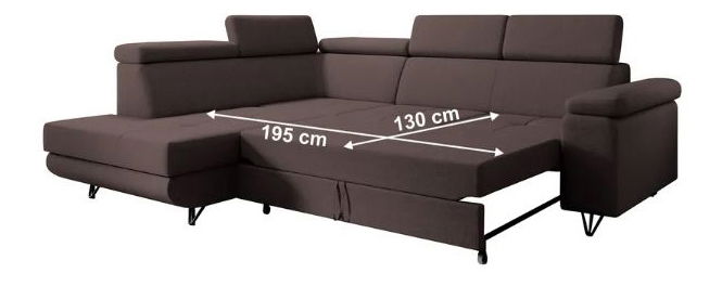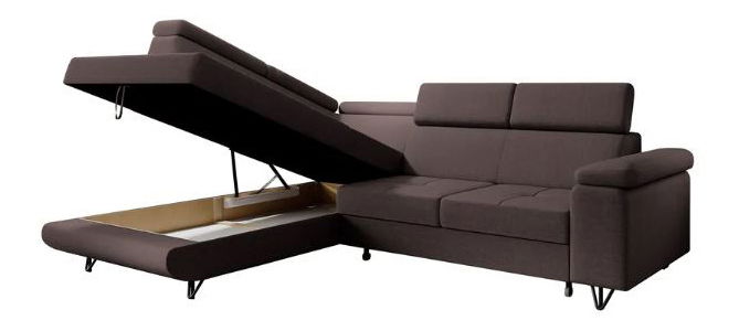 Rozkladacia, Rohová, S úložným priestorom, Dekoratívne prešitie, 5 polohovacích opierok hlavy, Na kovových nožičkách, Celočalúnená, Ľavé prevedenie