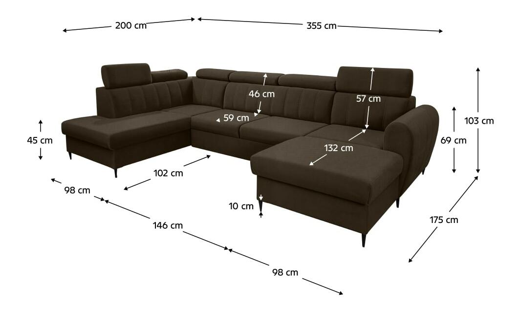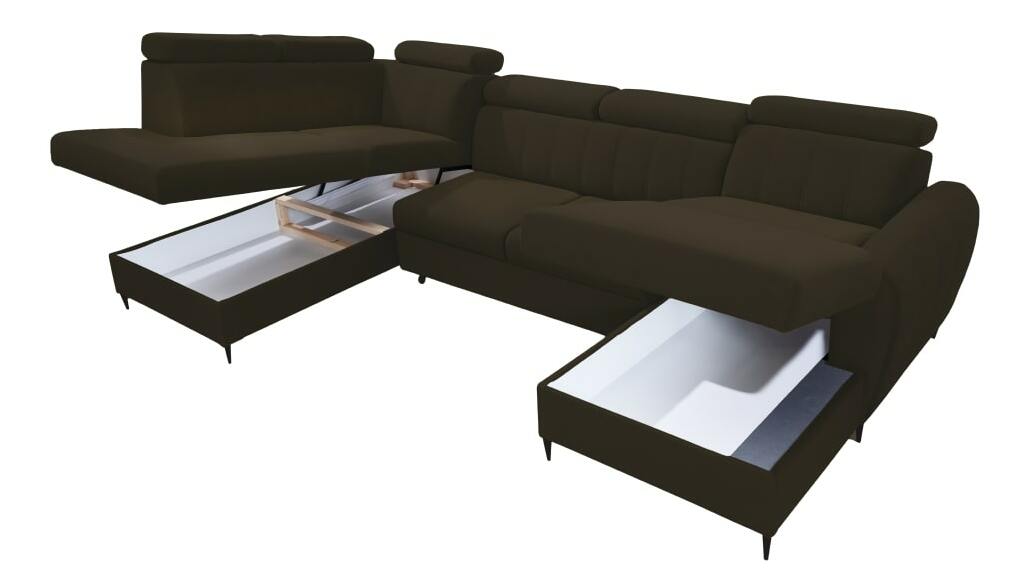 Na nožičkách, Rozkladacia, Rohová, Tvar U, Celočalúnená, Ľavé prevedenie, S úložným priestorom, Polohovacie opierky hlavy