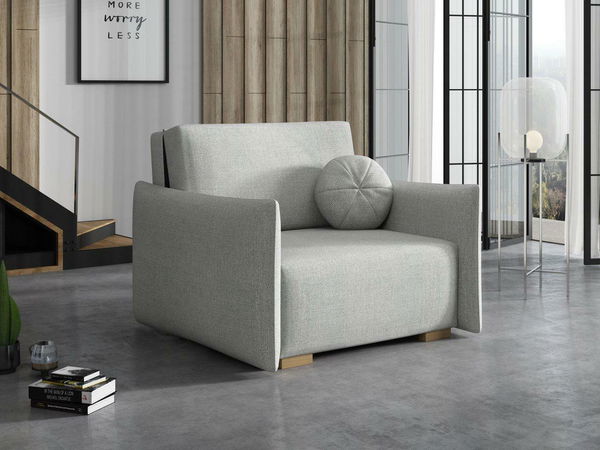 ZobraziťRozkladacie kreslo Clovea Glov I s funkciou spania vyhovuje potrebám malých a stiesnených miestností. Ponúka priestor na spanie pre 1 osobu a často sa vyberá do izieb pre mladých. Malé kreslo, ktoré sa stará o plochu na sedenie aj spanie, spĺňa očakávania tínedžerov aj ich rodičov. Praktické kreslo je tiež skvelým doplnkom relaxačnej obývačky. Umiestnené vedľa rohovej sedačky alebo väčšej pohovky. Kreslo sa dá rozložiť, čo zvyšuje funkčnosť obývacej izby a je užitočné, ak hostia potrebujú prenocovať. Úzke bočnice sú vizuálnym vrcholom tohto kusu nábytku. Tento dizajnový detail je závanom modernosti do interiéru každej miestnosti.