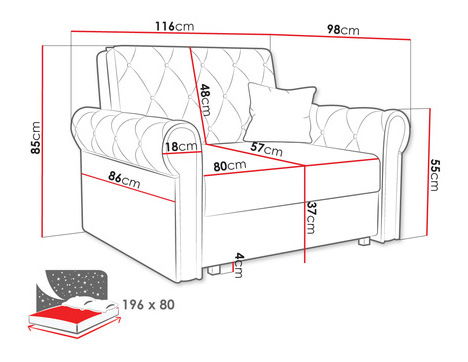 ZobraziťAk je vaším cieľom štýlový interiér a každodenný komfort, pozrite si náš ďalší návrh. Rozkladacie kreslo Clovea Roma I bude ideálne pre moderné interiéry, najmä tie zariadené v glamour klíme. Krásne farby, dekoratívne prešívanie a prešívanie jej dodávajú úžasný charakter, ktorý premení vašu miestnosť. Či už ho chcete umiestniť do menšej alebo väčšej miestnosti, všade sa bude perfektne hodiť. Okrem podmanivého vzhľadu má tento model aj množstvo praktických funkcií. Ide o polohovateľný variant s automatickým americkým typom. V okamihu tak premeníte plochu na sedenie na pohodlnú plochu na spanie. Okrem toho poskytuje aj úložný priestor. Do úložného priestoru umiestnite všetky potrebné veci a postaráte sa o to, aby bolo vaše okolie vždy upratané. Kreslo je voľne stojaceho typu, ktorý určite zapadne do každého dizajnu. Okrem toho je vybavené aj vankúšom a subtílnymi kovovými nožičkami.