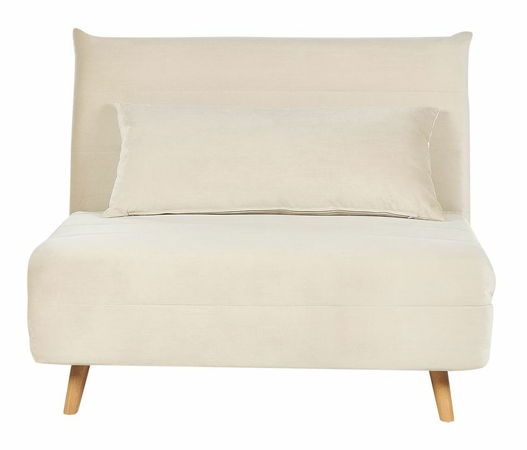 Kompaktná a očarujúca pohovka v krémovom farebnom prevedení je štýlovým a zároveň praktickým riešením do akéhokoľvek interiéru s obmedzeným priestorom. Vďaka rozkladaciemu mechanizmu a nastaviteľnému operadlu sa dá ľahko zmeniť na pohodlnú posteľ. Jednoduchý dizajn, ktorý je doplnený horizontálnym prešívaním a drevenými nohami, je vhodnou voľbou do interiérov zariadených v modernom a škandinávskom štýle. Vankúš na operadle má snímateľný poťah, ktorý uľahčí čistenie prípadných škvŕn.