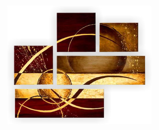 Vyplňte si prázdnu stenu v obývacej izbe, predsieni alebo pracovni týmto 5-dielnym ručne maľovaným obrazom, ktorý je vytvorený kombináciou akrylových a olejových farieb. Nanesená štruktúra vytvára 3D efekt. Obraz je namaľovaný na kvalitnom plátne a je natiahnutý na drevenom ráme. Obraz má háčik, čiže si ho môžete ihneď zavesiť.