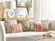Doplnky s farebným geometrickým vzorom sú skvelou voľbou nielen pre interiéry zariadené v boho štýle. Vankúše v hrejivých farbách veľmi príjemne doplnia moderne zariadené alebo tradičnejšie interiéry. Tieto dekoratívne vankúše s bavlnenými obliečkami sú veľmi pohodlné a ľahko sa udržiavajú. Dizajn vankúšov najlepšie vynikne v kontraste s doplnkami a nábytkom v svetlých farbách.
