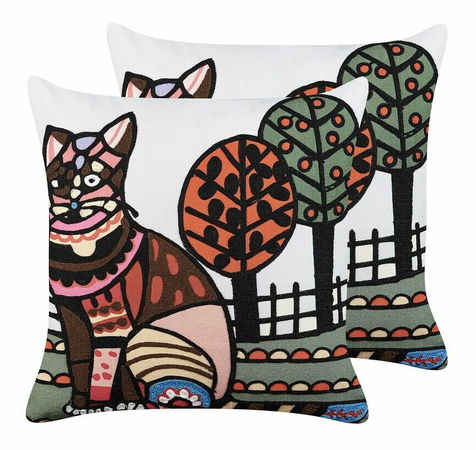 Doplňte svoj interiér týmito očarujúcimi vankúšmi v boho štýle. Vďaka farebnému vyšívanému vzoru s motívom mačky sú vhodným doplnkom do obývacej alebo detskej izby. Ručne vyrobené snímateľné poťahy z kvalitnej bavlny majú mäkkú výplň, takže sú nielen dekoratívne, ale aj praktické.