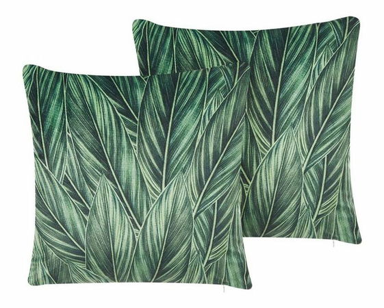 Tieto mäkké vankúše so vzorom palmových listov osviežia vzhľad každého interiéru. Ak ich umiestnite na pohovku alebo kreslo, obohatíte dekoráciu vašej obývačky. Súprava vankúšov sa hodí ako dizajnový kúsok, no dá sa použiť aj ako praktický doplnok vhodný na zdriemnutie si a relaxáciu. Obliečky sú vyrobené zo zamatu, majú zapínanie na zips a mäkkú výplň.