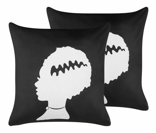Táto súprava vankúšov je perfektným doplnkom do interiéru pre všetkých milovníkov strašidelných príbehov. Vankúše znázorňujúce Frankensteinovu nevestu sú úžasnou halloweenskou dekoráciou, no okrem toho sú aj veľmi príjemné na dotyk a možno ich použiť nielen ako doplnky, ale aj ako pohodlné vankúše v spálni. Čistenie poťahov uľahčuje praktický zips umiestnený na bočnej strane.