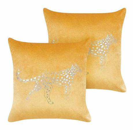 Dodajte svojmu interiéru exotický nádych a ozdobte ho touto sadou vankúšov. Vďaka zlatému motívu budú skvele ladiť s iným nábytkom či doplnkami s akcentmi v rovnakej farbe. Vankúše sú pohodlné, mäkké a odolné. Nevyžadujú špeciálnu starostlivosť a ich čistenie je možné vďaka snímateľným poťahom. Budú pútavým doplnkom v každej modernej obývačke alebo spálni v štýle safari.