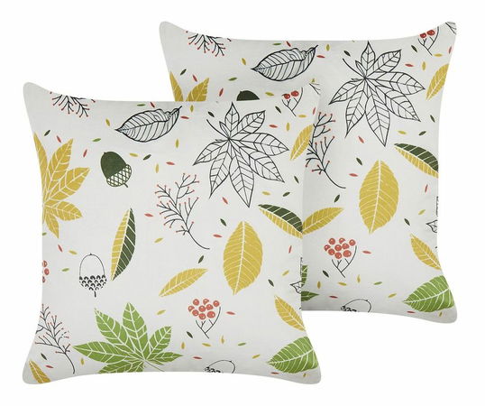Ozdobte svoju pohovku alebo posteľ touto súpravou 2 vankúšov v boho štýle s farebnou potlačou na oboch stranách. Poťahy majú krásny vzor listov v rôznych farbách a svojím dizajnom upútajú pozornosť vašich hostí. Vďaka praktickému zipsu na bočnej strane sa veľmi jednoducho čistia a udržiavajú a ich zamatový poťah je mimoriadne jemný na dotyk.