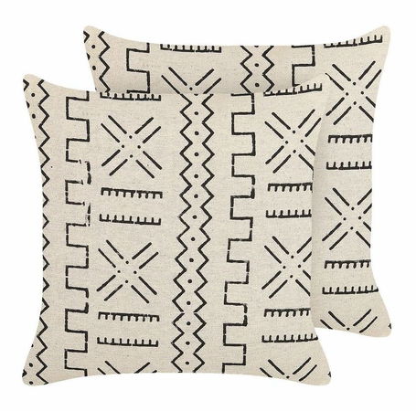 Vdýchnite svojej pohovke nový život a oživte jej vzhľad novými dekoračnými vankúšmi. Táto súprava 2 vankúšov je vyrobená z vysokokvalitnej bavlny s geometrickým vzorom vyrobeným technikou blokovej tlače a stane sa elegantným a jedinečným dekoratívnym prvkom. Vďaka jednoduchej, prírodnej farbe ich ľahko zladíte s nábytkom v odvážnych, ale aj pastelových tónoch.