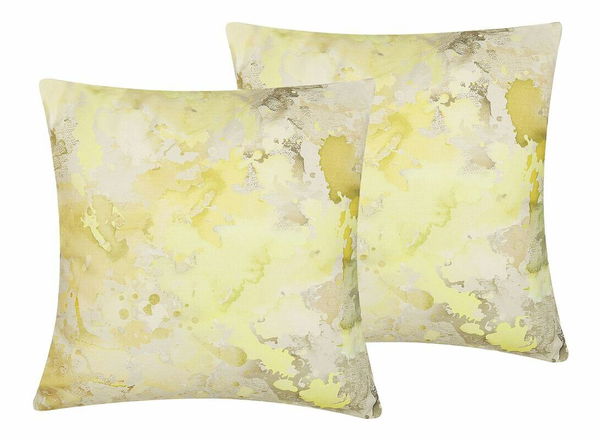 Krásny abstraktný vzor týchto vankúšov skvele vynikne v akomkoľvek moderne zariadenom priestore. Ich žltá, žiarivá farba miestnosť krásne oživí a upúta pozornosť všetkých vašich hostí. Poťahy sú vyrobené z bavlny, ktorá je odolná a mäkká na dotyk.