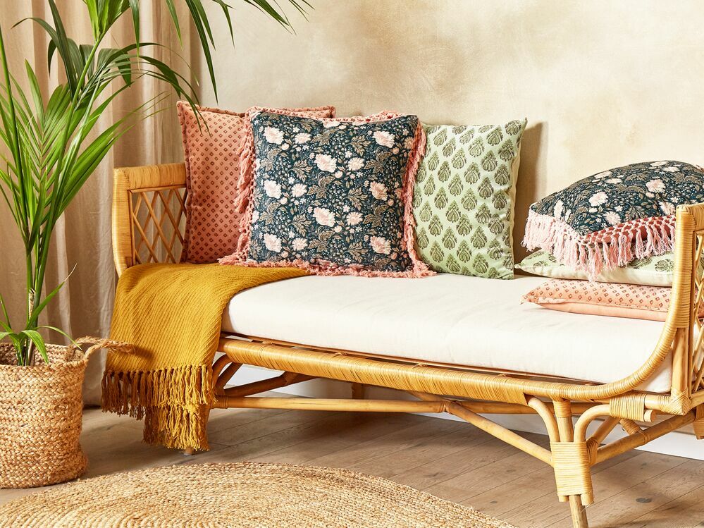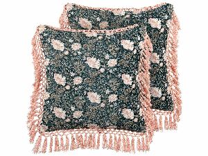 Skrášlite si pohovku alebo posteľ týmito nádhernými vankúšmi. Jemný kvetovaný vzor v odtieňoch ružovej a modrej dopĺňajú ozdobné strapce po celom obvode. Vankúše možno použiť samostatne alebo v kombinácii s inými textilnými dekoráciami.