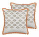Váš interiér získa svieži vzhľad, ak ho doplníte týmito dekoratívnymi vankúšmi. Kvetovaný vzor, vyrobený ručne technikou blokovej tlače, zvýrazňujú okraje v oranžovej farbe. Vankúše sú vyrobené z bavlny a majú polyesterovú výplň a zapínanie na zips.