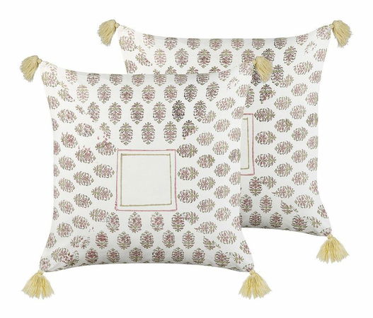 Doplňte svoju obývaciu izbu týmito dekoratívnymi vankúšmi s romantickým dizajnom. Bavlnené obliečky s geometrickým vzorom a strapcami boli vyrobené ručne pomocou techniky blokovej tlače. Vankúše majú praktický zips a kvalitnú polyesterovú výplň, vďaka ktorej sú neuveriteľne mäkké.