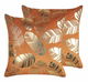 Vylepšite vzhľad svojho interiéru touto úžasnou súpravou zamatových vankúšov. Oba vankúše majú zlatú potlač so vzorom listov a výborne doplnia akékoľvek kreslo, pohovku alebo posteľ. Žiarivá oranžová farba nádherne ladí so zlatou potlačou a oživí každý interiér v modernom alebo elegantnom štýle.