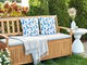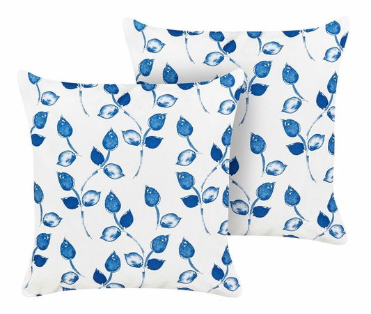 Táto nádherná sada dvoch vzorovaných vankúšov navodí uvoľnenú a relaxačnú atmosféru v akomkoľvek vonkajšom prostredí. Štvorcové dekoratívne vankúše, ktoré sú ozdobené osviežujúcim vzorom modrých lístkov na bielom pozadí, majú vodoodolné poťahy, takže do vášho vonkajšieho priestoru vnesú okrem štýlu aj dávku funkčnosti.