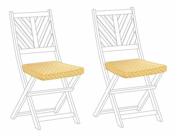 Záhradnému nábytku nesmú chýbať pohodlné vankúše na sedenie. Táto súprava vankúšov na záhradné stoličky má hrubú výplň, ktorá zaručí pohodlné sedenie. Vďaka praktickým šnúrkam možno vankúše bezpečne pripevniť k nábytku. Pútavý vzor v klasickej bielej a výraznej žltej v okamihu navodí pravú letnú atmosféru v akomkoľvek vonkajšom priestore.