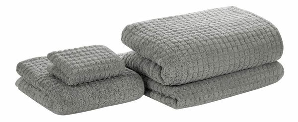 Táto súprava výnimočne mäkkých a nadýchaných uterákov je tou najlepšou voľbou do vašej kúpeľne. Zahŕňa všetko, čo budete potrebovať: uterák pre hostí, uterák na ruky, osušku a veľkú osušku. Vzorovaná textúra je príjemná nielen na dotyk, ale aj na pohľad. Uteráky sú vyrobené z dlhých vlákien kvalitnej bavlny, sú jemné k pokožke a ideálne na každodenné používanie. Ich štruktúra zaručuje vysokú savosť a rýchle schnutie.