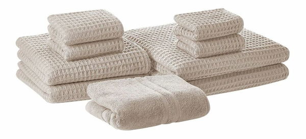 Táto sada vaflových uterákov sa stane vašou obľúbenou v okamihu, keď ju použijete. Ich štruktúra im dodáva luxusný vzhľad, čo z nich robí ideálne uteráky pre hostí. Uteráky sú veľmi mäkké a hrejivé, a to vďaka takzvanému nulovému krúteniu (zero twist) a hustým vláknam. Vďaka svojej textúre rýchlo odvádzajú vlhkosť z pokožky a rýchlo sa vysušia. Sada obsahuje uteráky pre hostí, uteráky na ruky, osušky a predložku do kúpeľne.