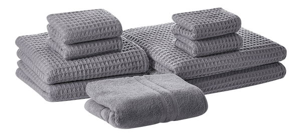 Táto sada vaflových uterákov sa stane vašou obľúbenou v okamihu, keď ju použijete. Ich štruktúra im dodáva luxusný vzhľad, čo z nich robí ideálne uteráky pre hostí. Uteráky sú veľmi mäkké a hrejivé, a to vďaka takzvanému nulovému krúteniu (zero twist) a hustým vláknam. Vďaka svojej textúre rýchlo odvádzajú vlhkosť z pokožky a rýchlo sa vysušia. Sada obsahuje uteráky pre hostí, uteráky na ruky, osušky a predložku do kúpeľne.