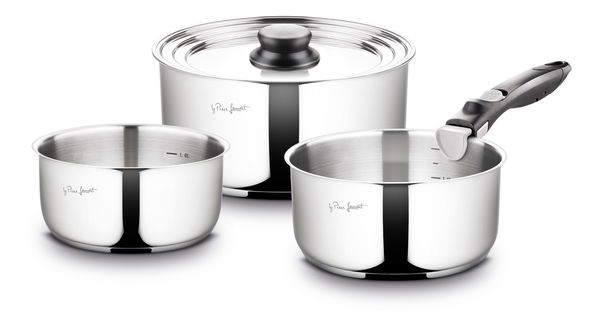 Sada 5 kusov riaduVyrobené z prvotriednej nehrdzavejúcej oceleDizajnový nerezový riad vyrobený z prvotriednej nehrdzavejúcej ocele, silným sendvičovým dnom a veľmi elegantnou odoberateľnou rukoväťou pre lepšiu skladovateľnosťSúčasťou je univerzálna pokrievka vo veľkostiach hrncov vyrobená z nehrdzavejúcej oceleVhodné na všetky typy ohrevuJednoduchá údržba a čisteniePriemer: 16 cm, 18 cm, 20 cmVýška: 7,5 cm, 8,5 cm, 9,5 cmUniverzálne pokrievky: 16 cm , 18cm , 20 cmObjem: 1,2 l a 2,5 lMateriál: nerezFarba: nerez