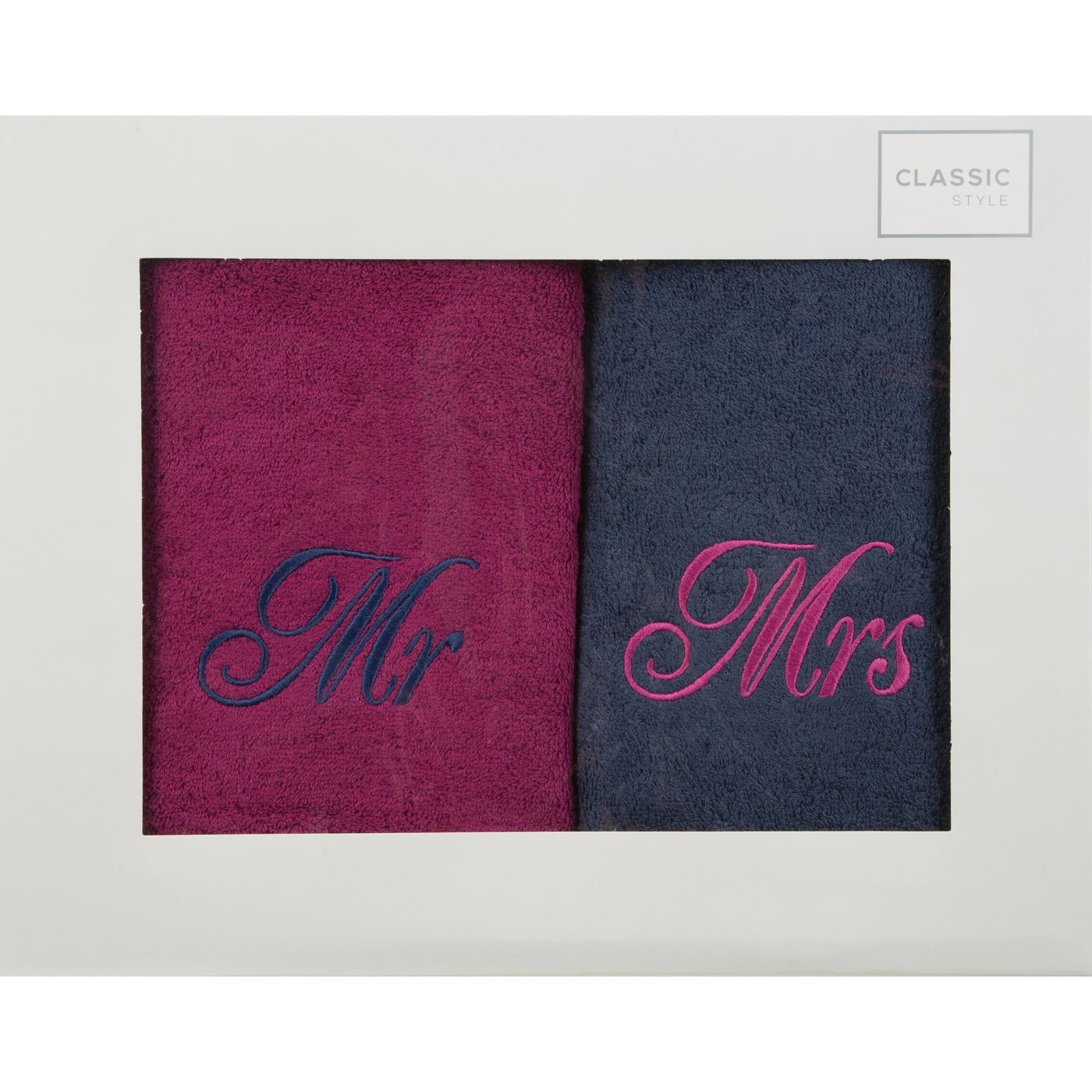 Sada uterákov 50x90 cm Mr Mrs (amarant + tmavomodrá)