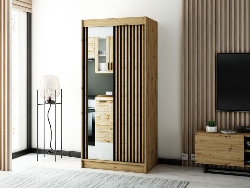 - Šatníková skriňa 100 cm Ladonna 2 (dub artisan + čierna matná) (so zrkadlom)