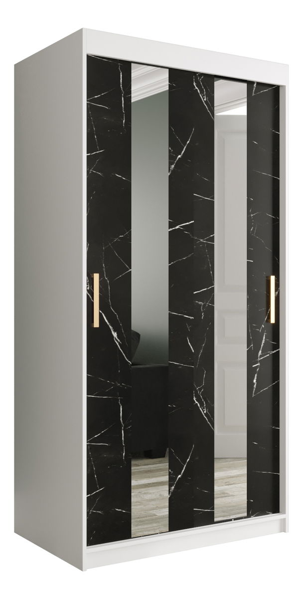 Šatníková skriňa 100 cm Marbelo P (matná biela + čierny mramor)