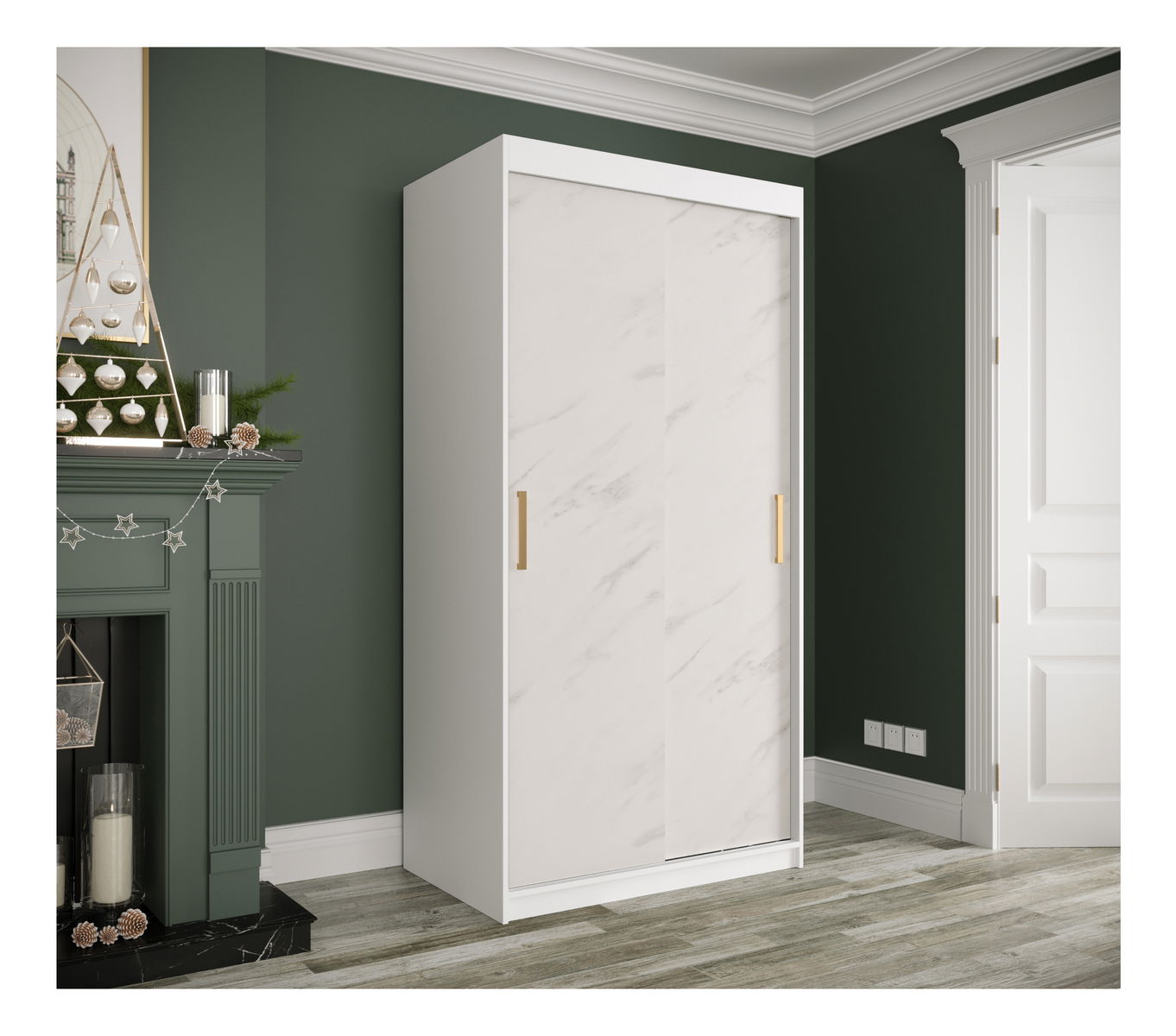 Šatníková skriňa 100 cm Marbelo T (matná biela + biely mramor)