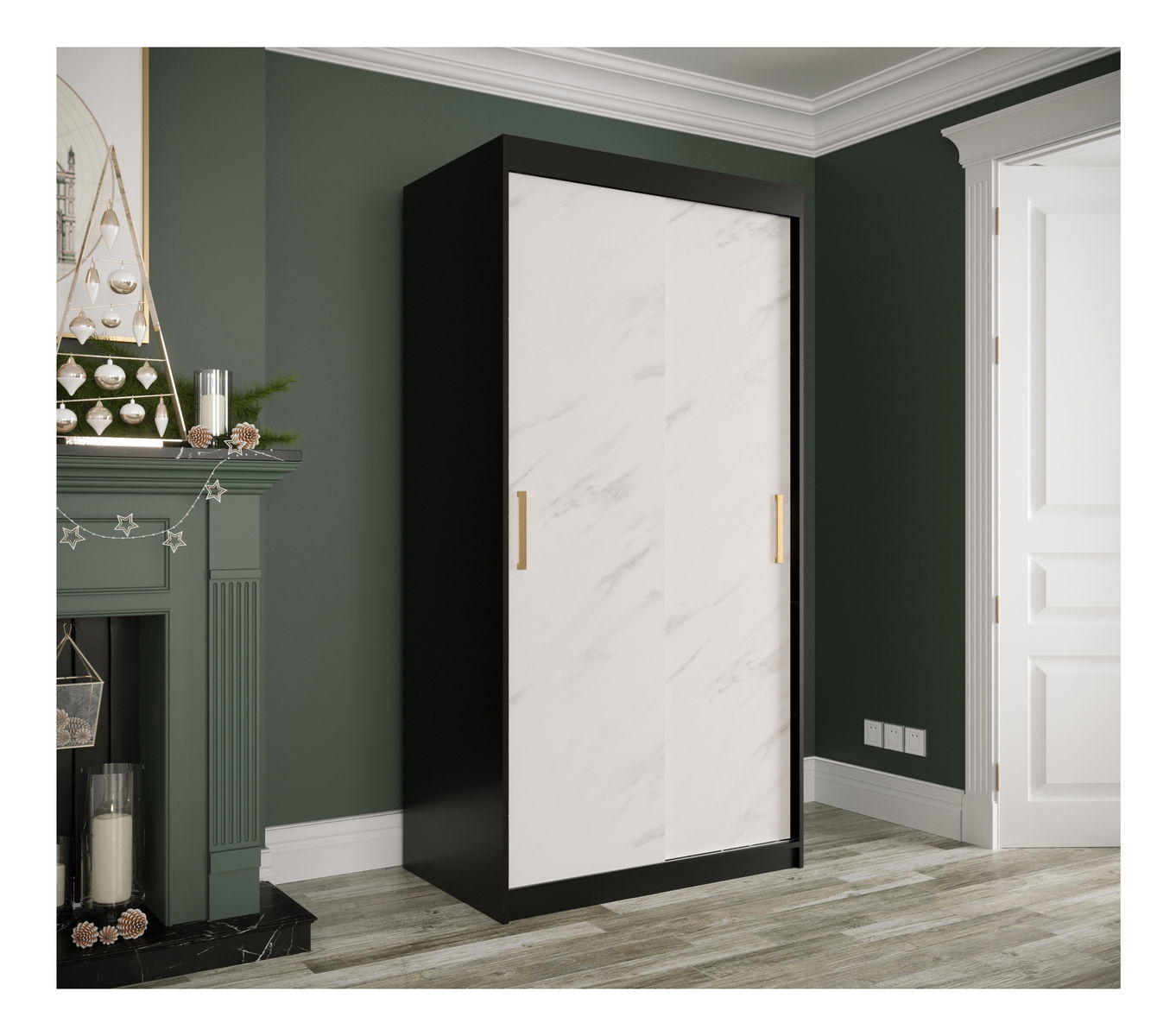 ZobraziťŠatníková skriňa Marbelo T s matnou čiernou a bielym mramorom, ktorá má výšku 200 cm, šírku 100 cm a hĺbku 62 cm, je dokonalým doplnkom pre vašu spálňu. Táto skriňa s posuvnými dverami má štýlové a funkčné riešenia, ktoré dokonale zvýrazňujú jej bohatý vzhľad, pripomínajúci mramor. Zlaté úchytky pridávajú eleganciu a umožňujú ľahký prístup k vášmu šatníku. Vo vnútri nájdete dostatok úložného priestoru na oblečenie, obuv a doplnky, všetko v odolnej a elegantnej konštrukcii. Tento univerzálny šatník s posuvnými dverami sa hodí do rôznych izieb a dodáva im šmrnc. S touto šatníkovou skriňou Marbelo T si môžete zabezpečiť dokonalú organizáciu a estetiku vašej spálne. Je to kompaktný, ale ohromujúci kus nábytku, ktorý spojuje luxus s praktickosťou.