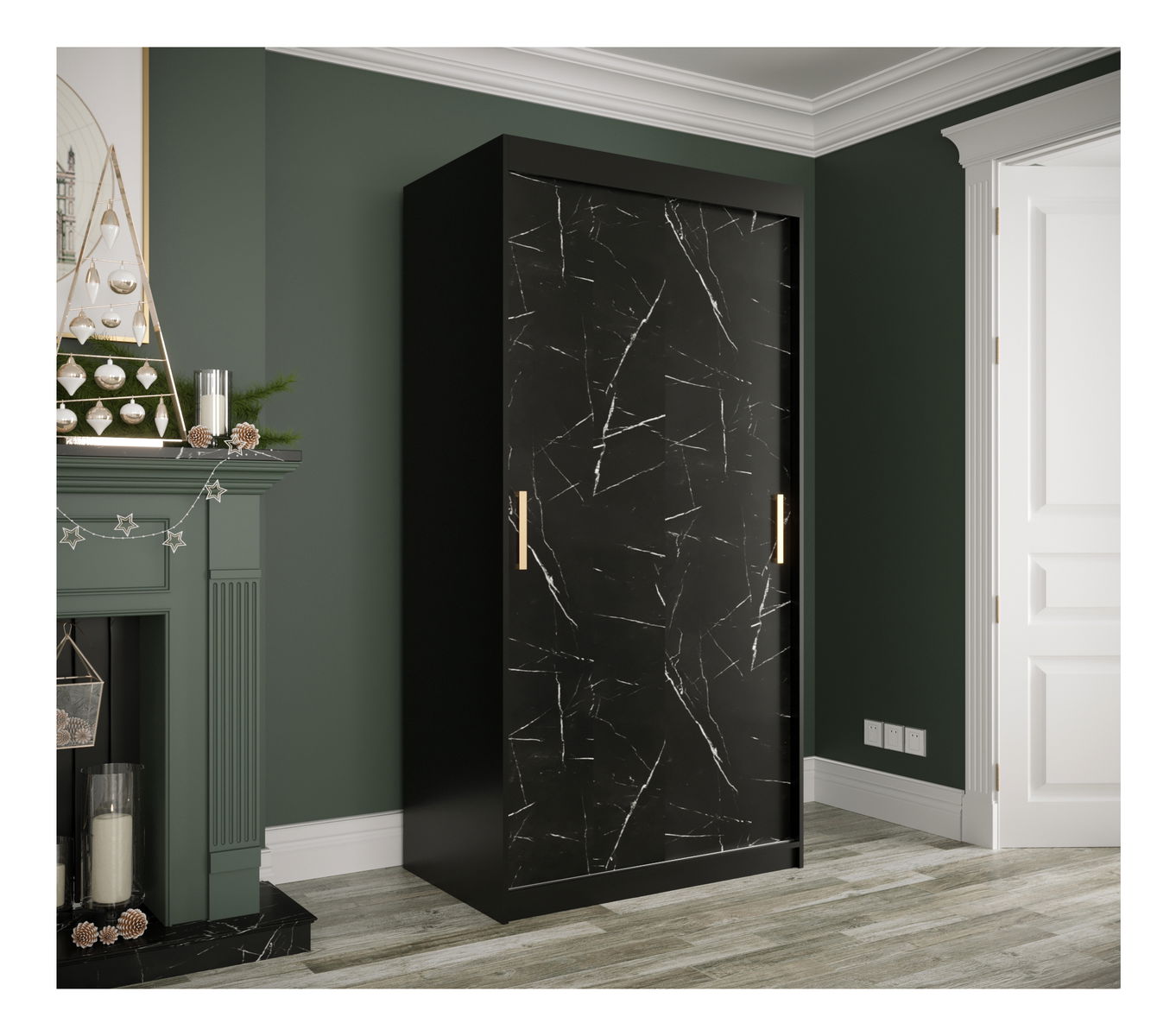 Šatníková skriňa 100 cm Marbelo T (matná čierna + čierny mramor)