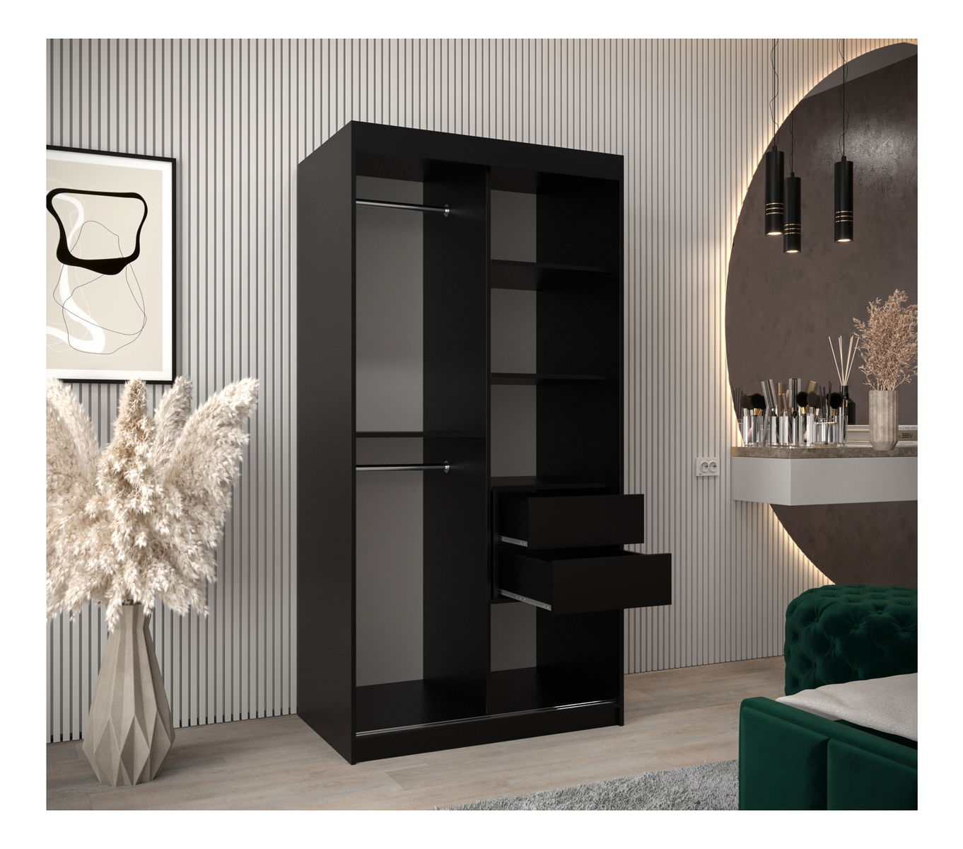 Šatníková skriňa 100 cm Toki 1 (Čierna matná + Čierna matná)