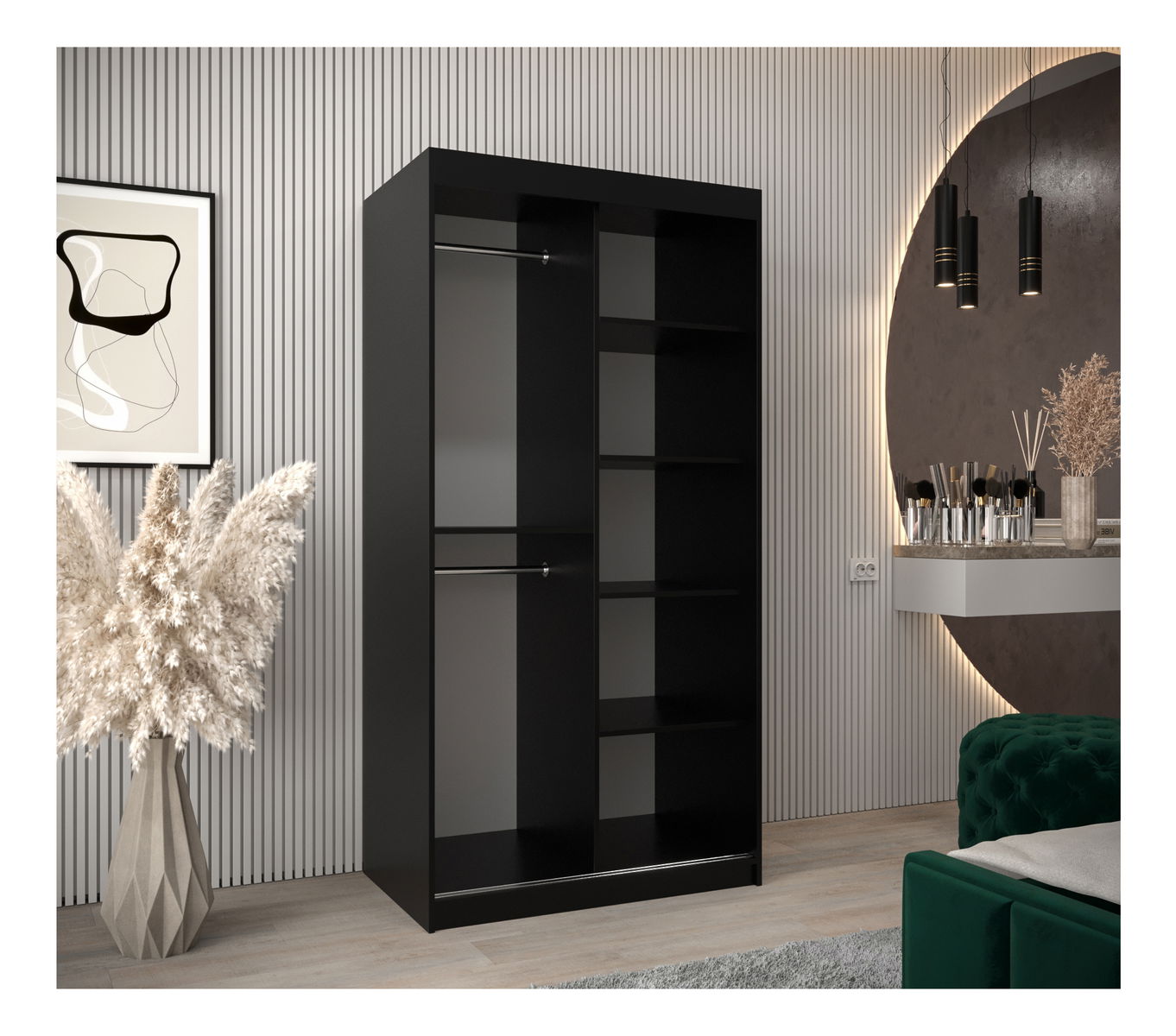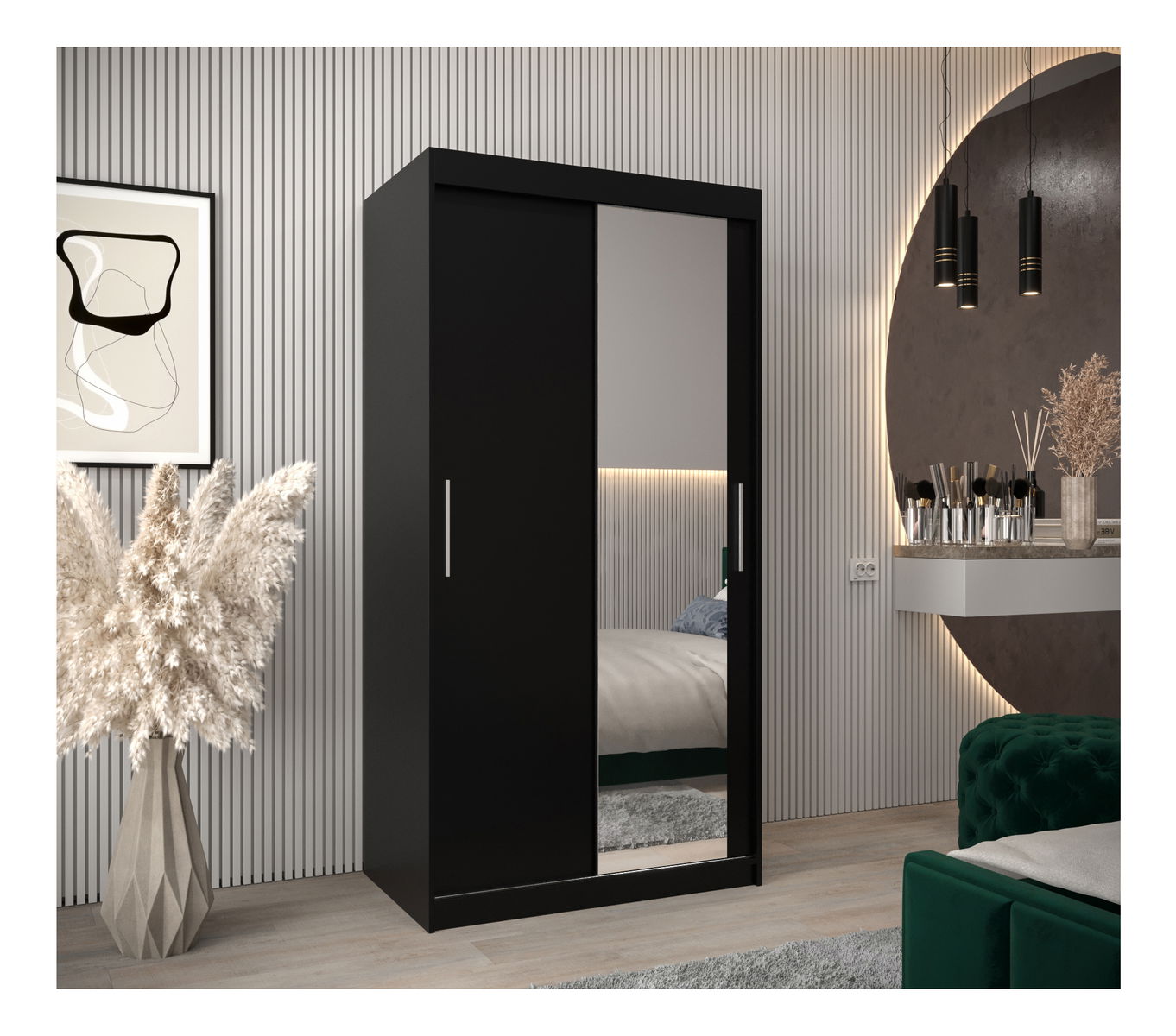 ZobraziťPredstavujeme vám šatníkovú skriňu Toki s posuvnými dverami - elegantné a moderné riešenie pre uskladnenie oblečenia v súčasnej domácnosti. Šatníková skriňa Toki je vybavená inovatívnym posuvným systémom LAGUNA, ktorý zabezpečuje jednoduchý prístup k vašim šatám a má strieborné plastové úchyty pre minimalistický vzhľad. S posuvnými dverami zdobenými zrkadlom ponúka pohodlie aj štýl. Táto skriňa je navrhnutá tak, aby zdvihla vašu miestnosť a spojila praktickosť s minimalistickou estetikou. Môžete si v nej ľahko usporiadať všetky svoje veci a dodáte svojej izbe dotyk modernej elegancie. Šatníková skriňa Toki s posuvnými dverami je kombináciou formy a funkčnosti.