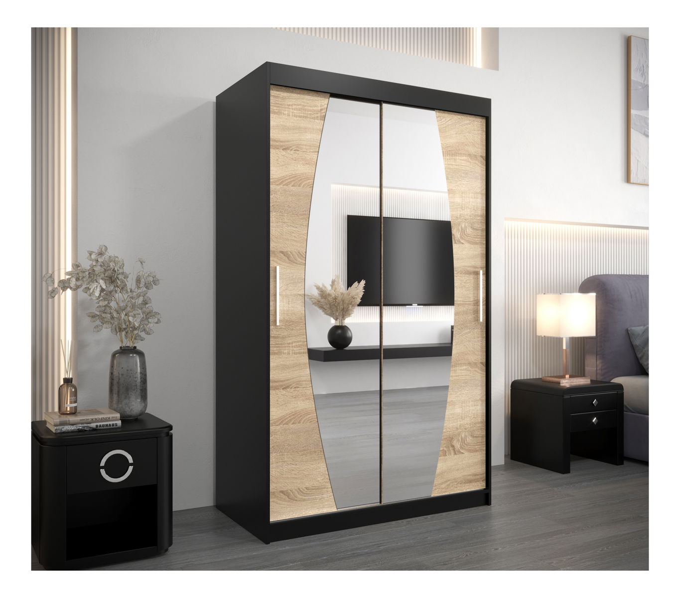 Šatníková skriňa 120 cm Eclipse (čierna matná + dub sonoma)